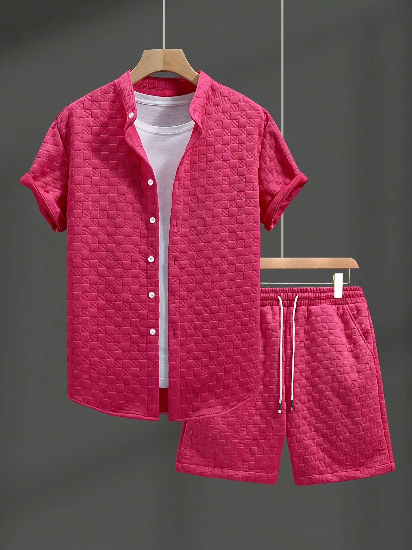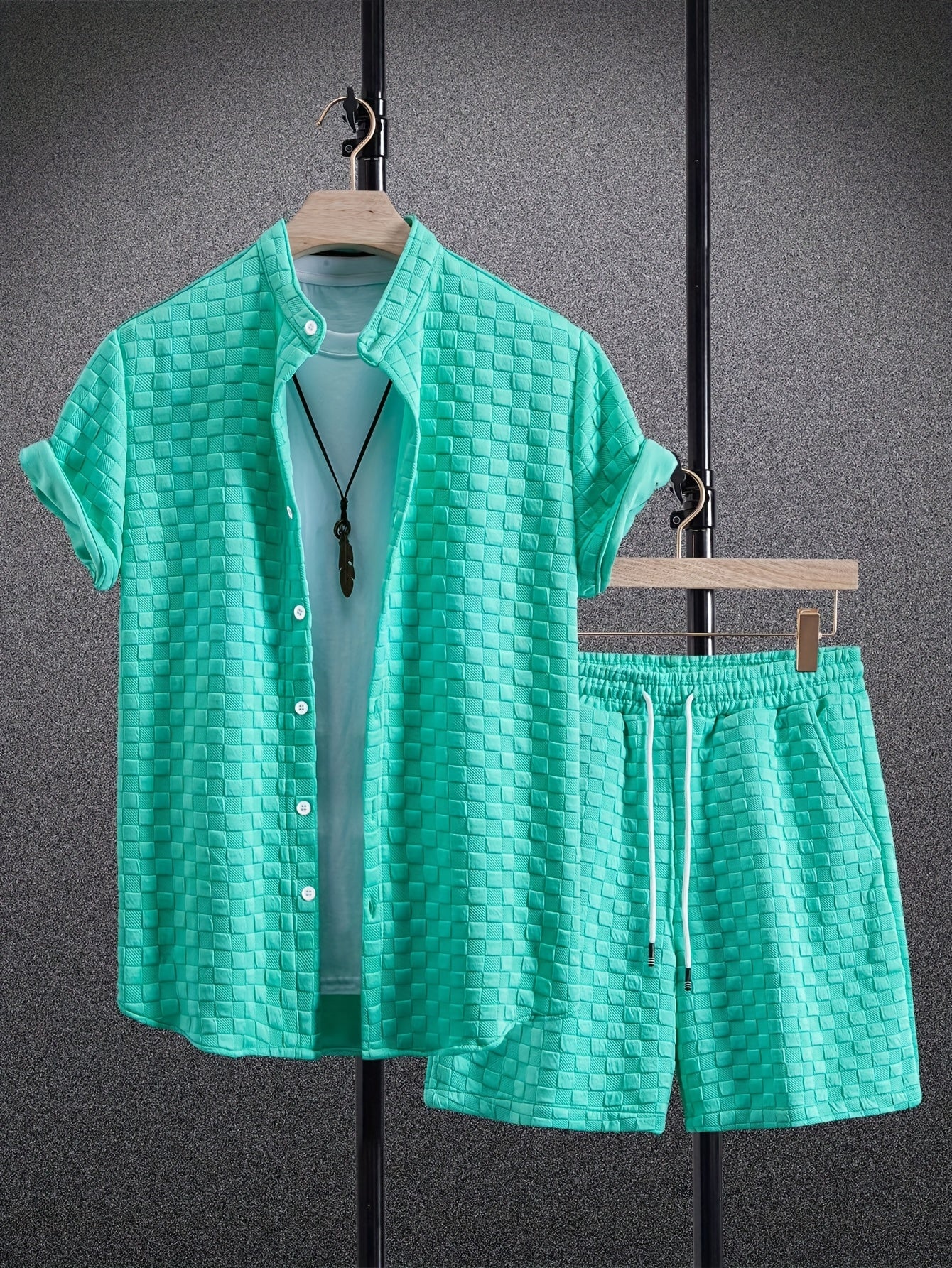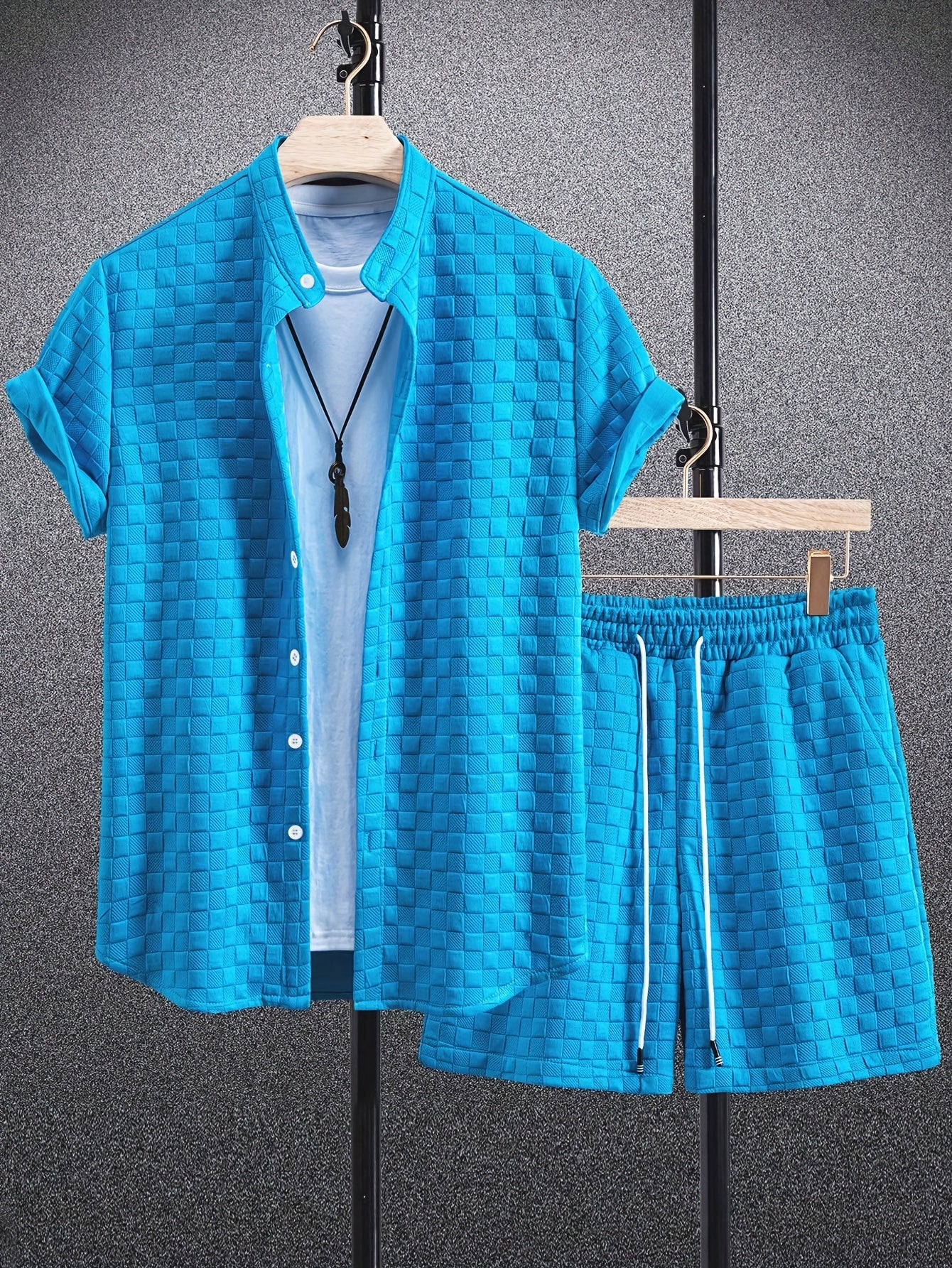 Stay stylish and comfortable this summer with our Men’s Casual Set, featuring a short sleeve shirt and drawstring shorts. Made from lightweight, breathable polyester, perfect for warm days.