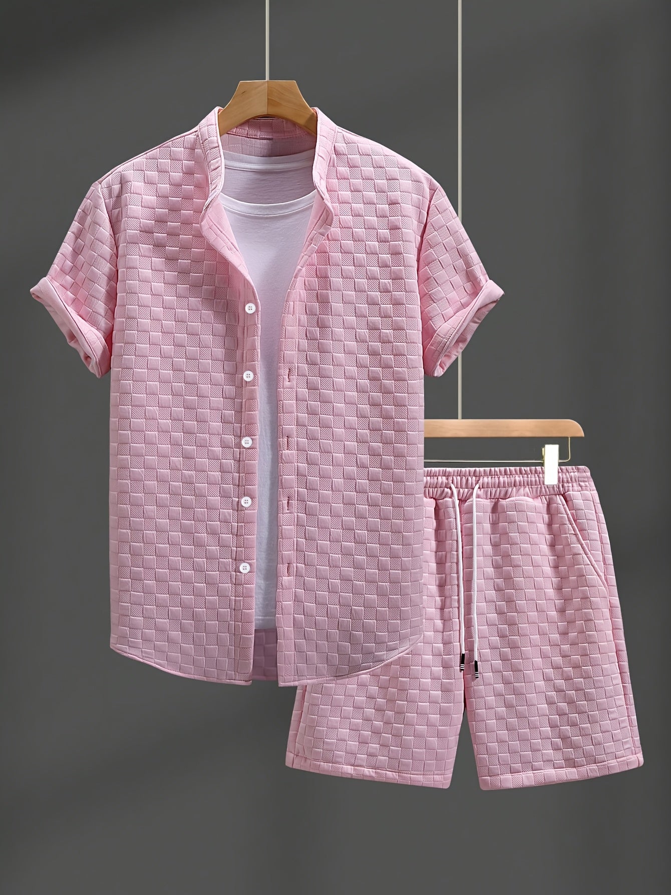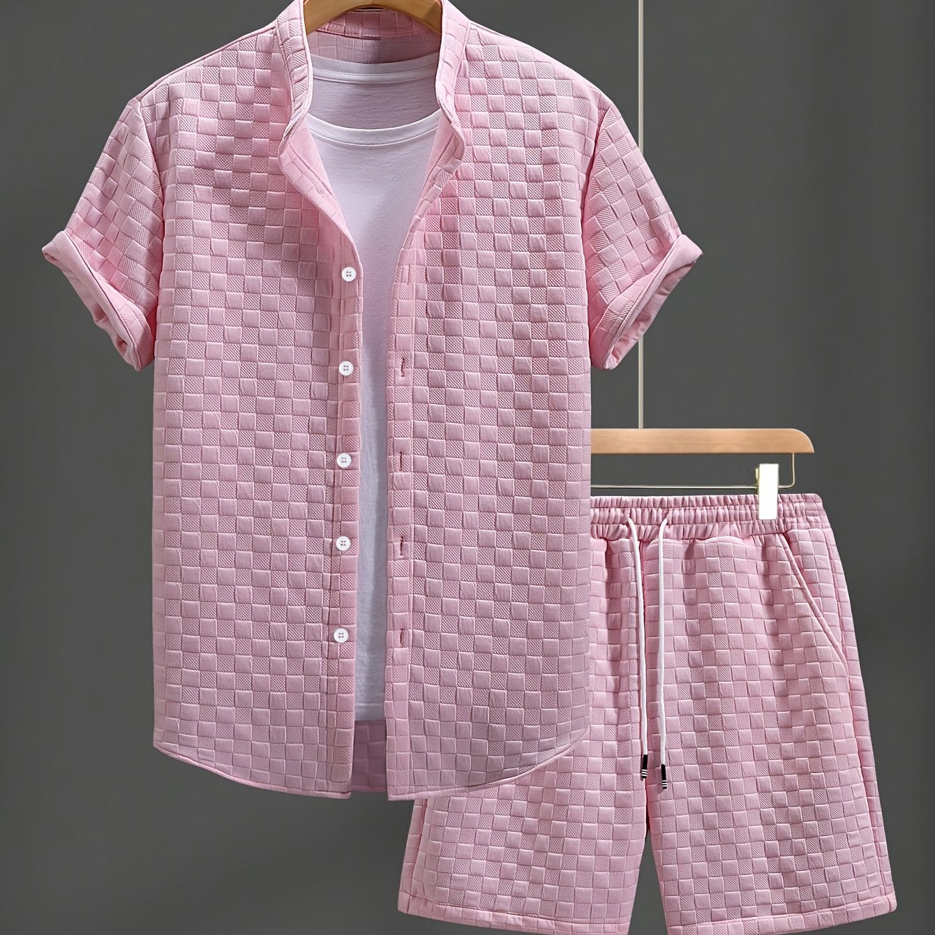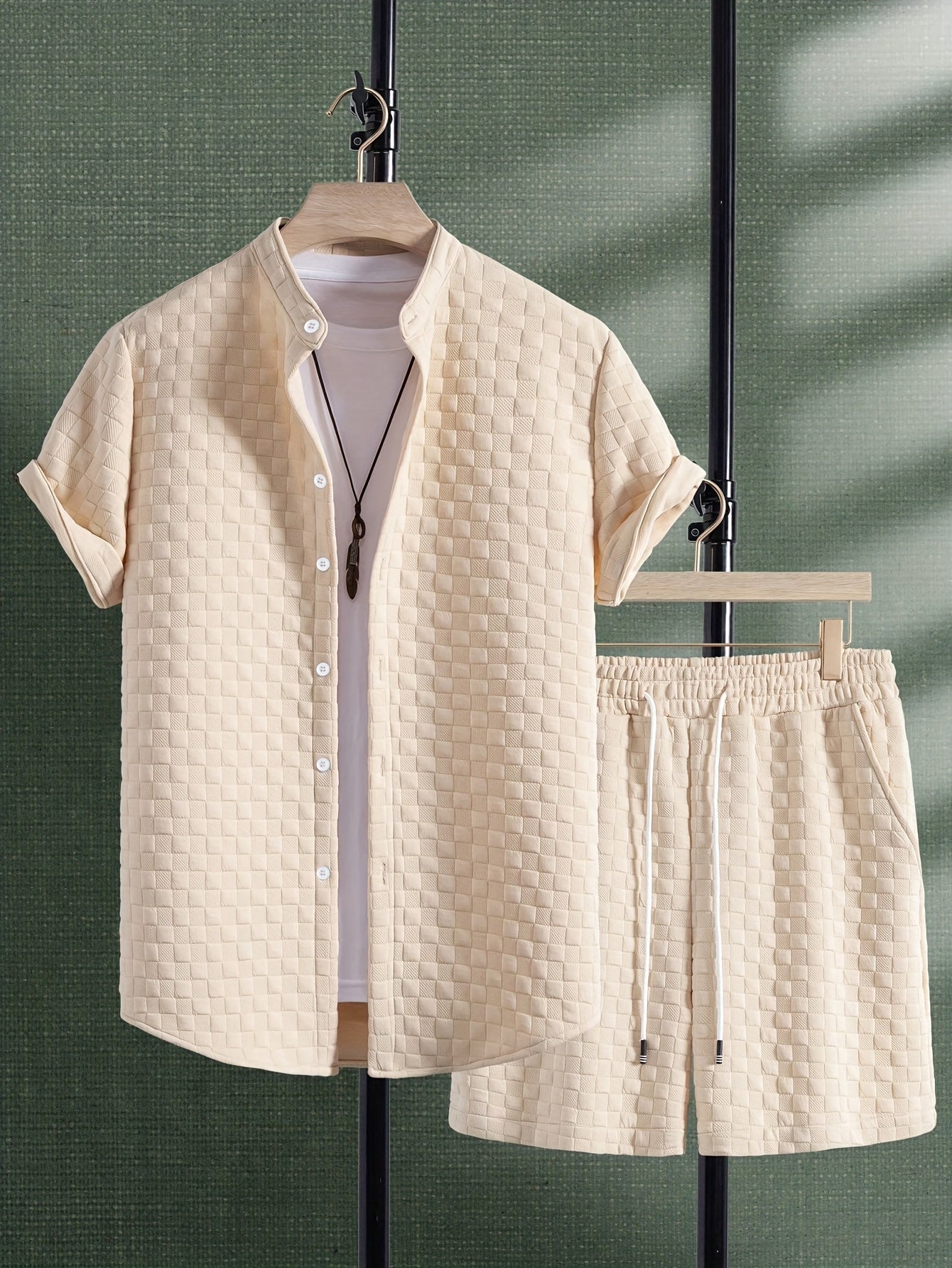 Stay stylish and comfortable this summer with our Men’s Casual Set, featuring a short sleeve shirt and drawstring shorts. Made from lightweight, breathable polyester, perfect for warm days.